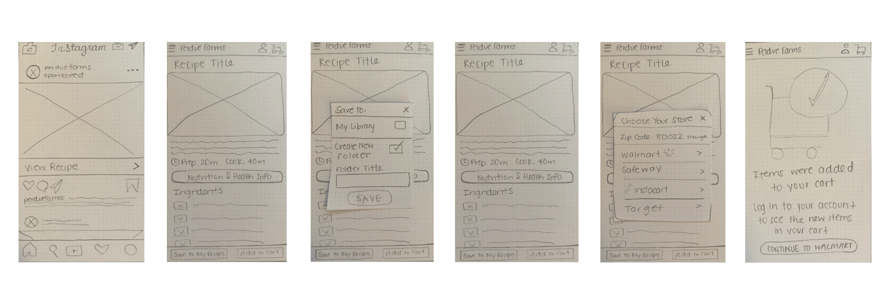 In a 9-day sprint, the goal was to design a forward-thinking, short-term implementation oriented convenient recipe section for Perdue Farms’ mobile website. The primary challenge was to unify UI of both experiences in order to improve recipe to checkout experience with enhanced content and flow. The recipe section was intended to satisfy the enterprise goals without sacrificing the consumer focus.