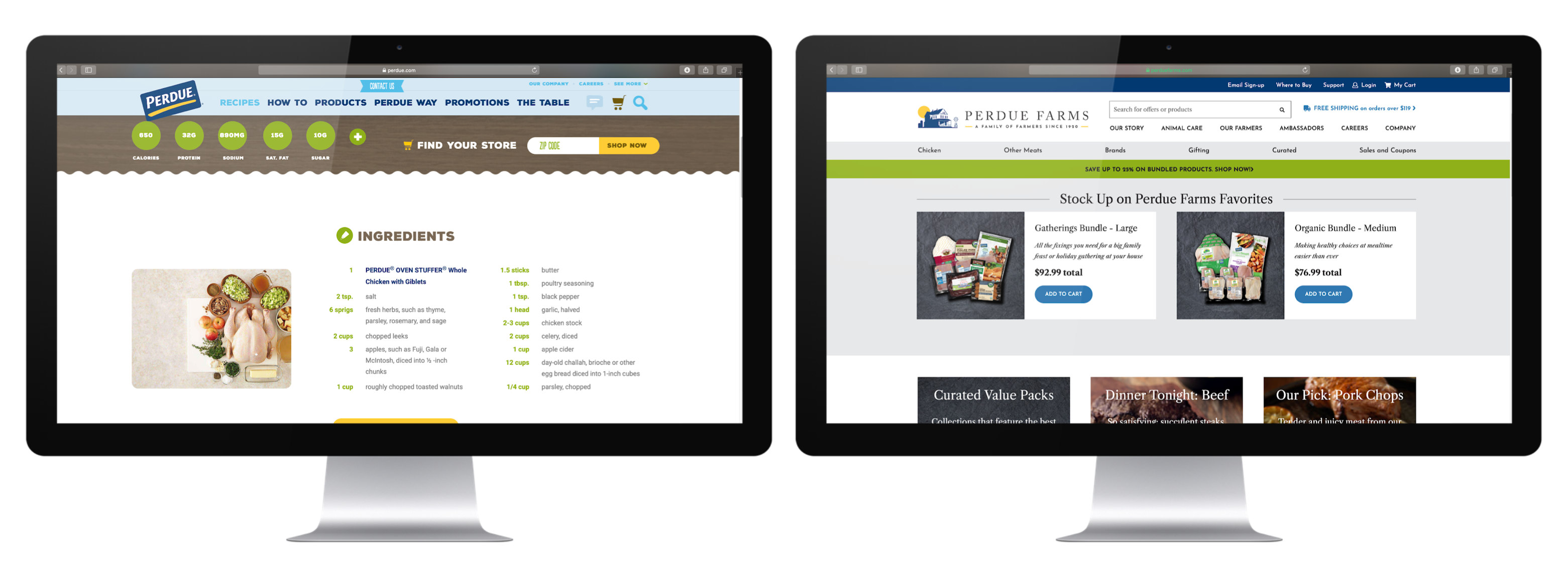 After going through site analytics data Perdue Farms determined that most of their informational site’s traffic was associated with their recipe section. For that reason after launching the main checkout functionality as a next step they continued with the site unification effort, combining the recipe section with the checkout process.
