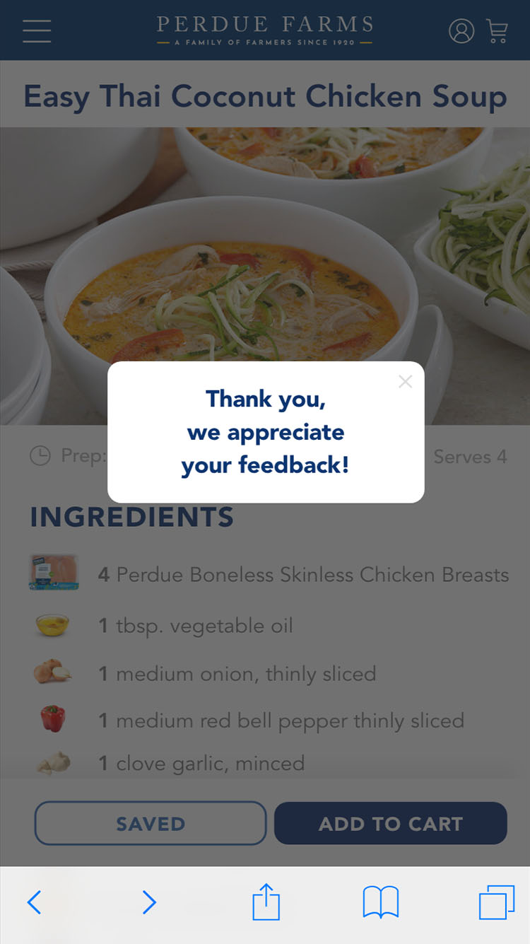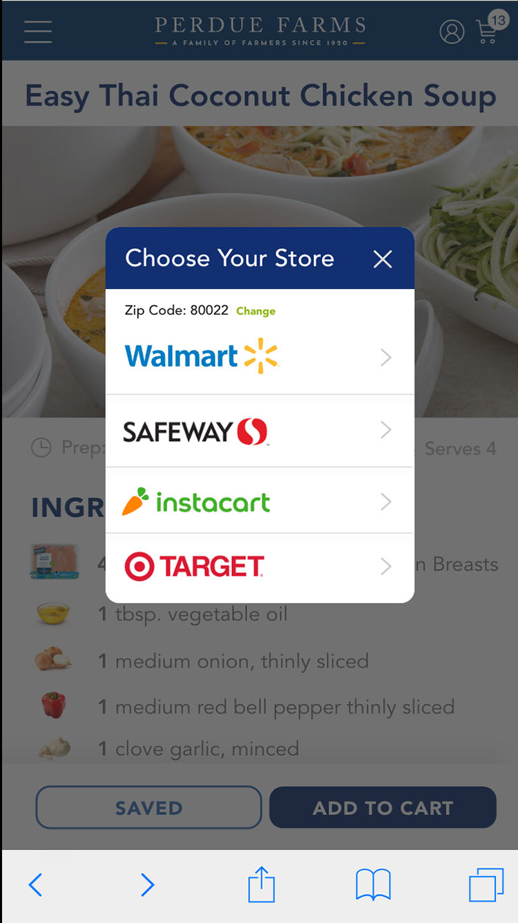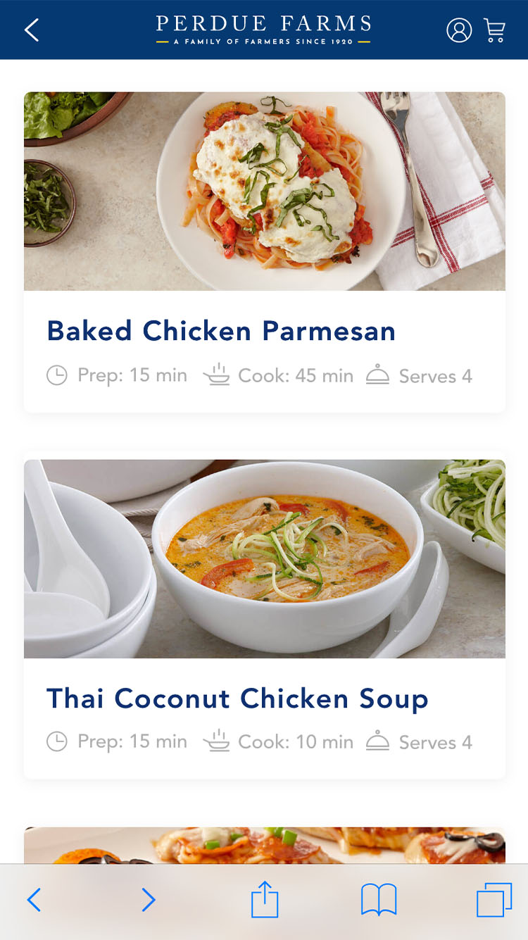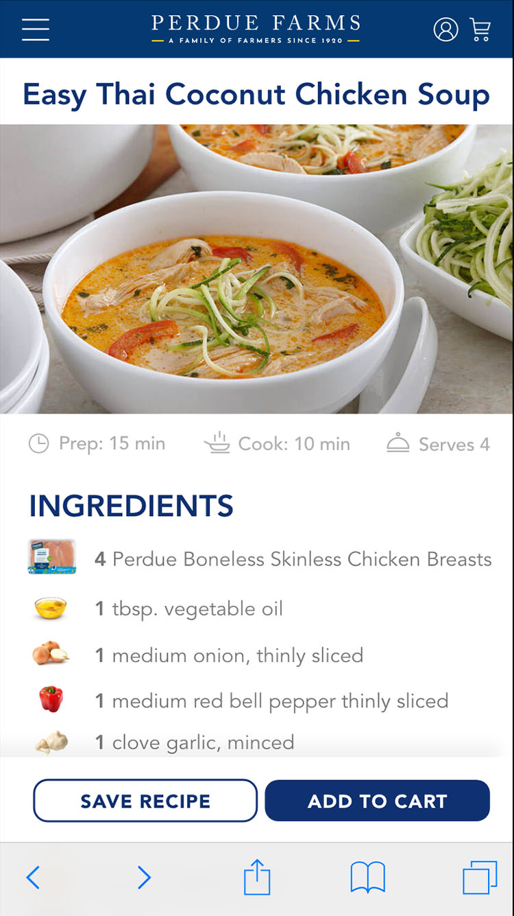 After going through site analytics data Perdue Farms determined that most of their informational site’s traffic was associated with their recipe section. For that reason after launching the main checkout functionality as a next step they continued with the site unification effort, combining the recipe section with the checkout process.