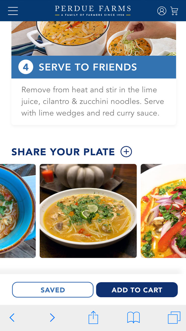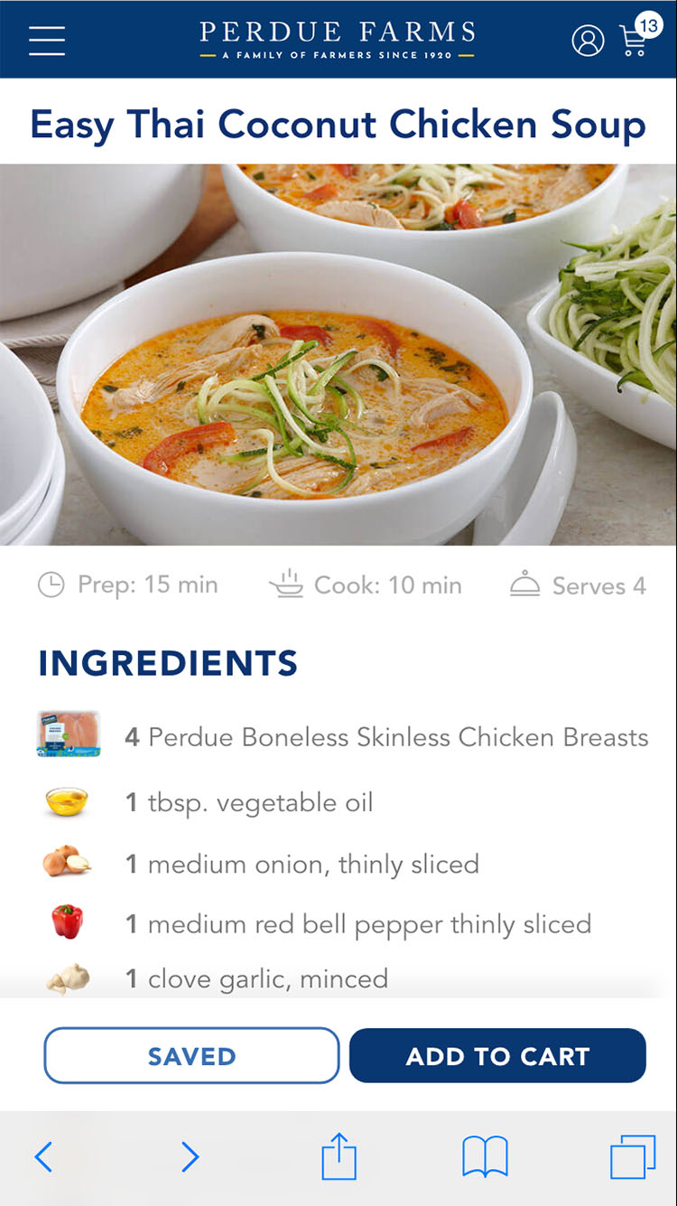 Perdue Farms’ recipe section is a mobile website that allows users to: