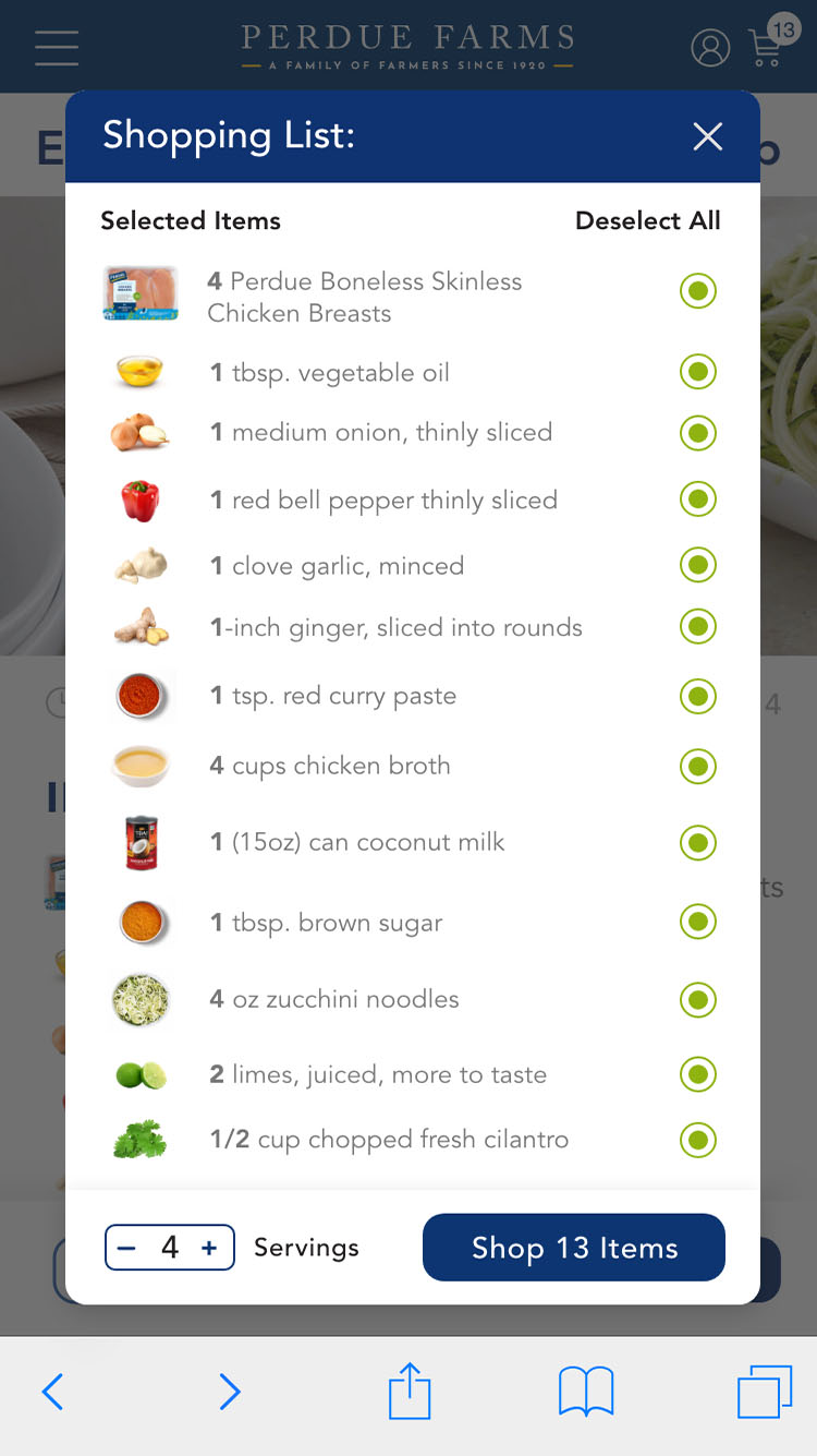 Customization / Creation: Allowing users to create recipes that has at least one Perdue item